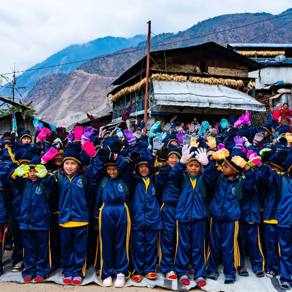 At the start of the year, we wanted to bring joy to the children of Kyablungthang Secondary School in Sindhupalchowk. Through our school project, we distributed much-needed school supplies and winter clothing to 173 students. Each student received: